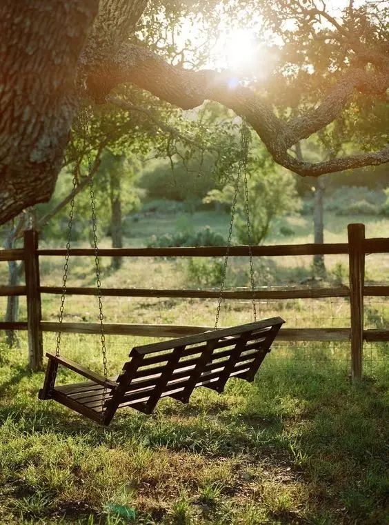 竹林清风送爽,树下秋千吱吖