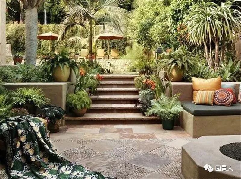 2.利用合适的植物、石头、水、灯光、砂砾,配合植物的人工修剪营造景观。