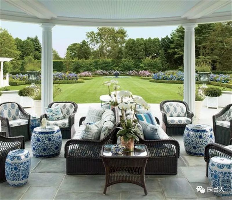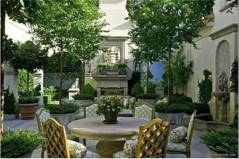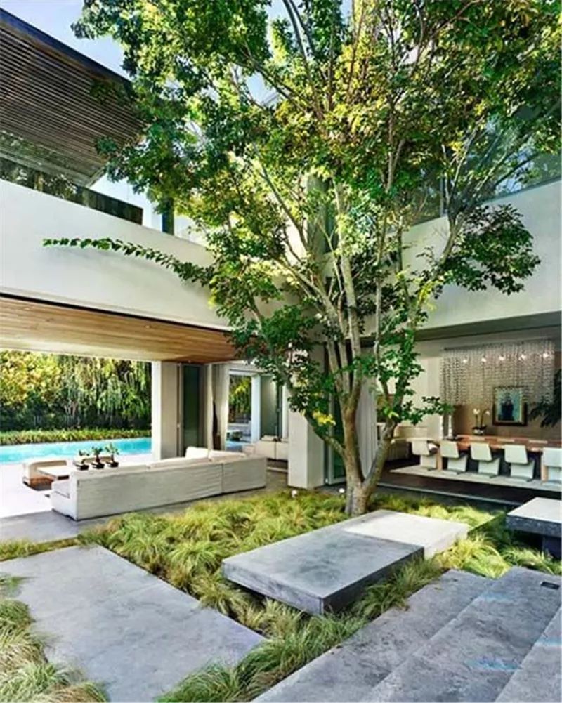 2.草坪为现代庭院中的主体,配合大树和少量草花;