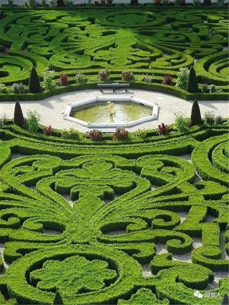 2.修剪整齐的灌木和模纹花坛是法国和意大利园林的特色;