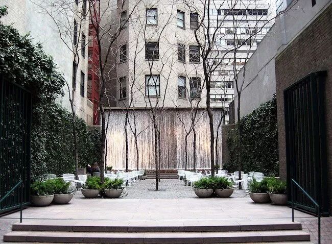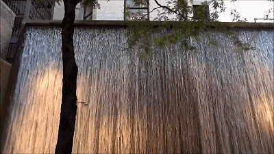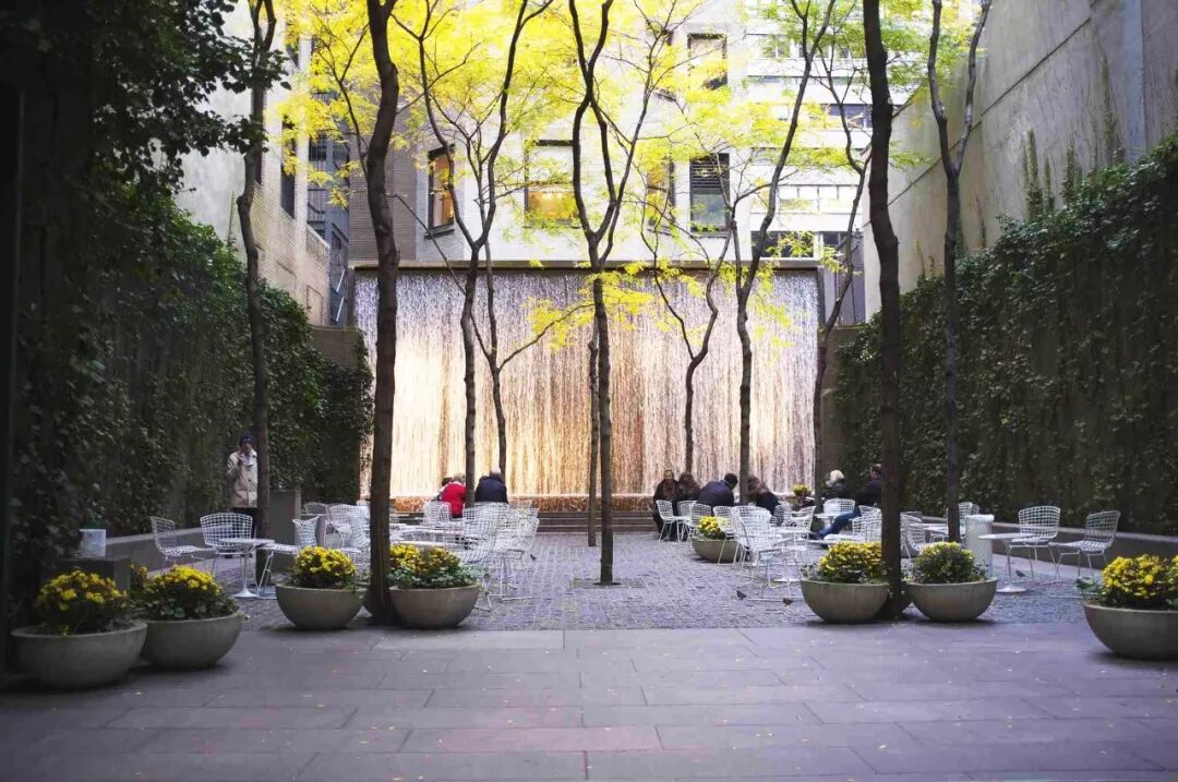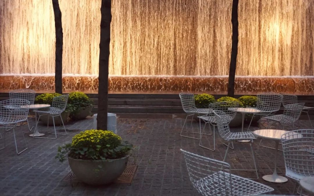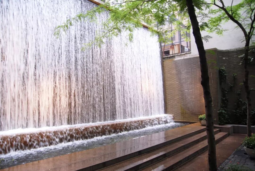 环境是需要营造的,巨大的跌水声完全掩盖了街道的嘈杂,用控制听觉的方法界定了整个空间的第六个面,创造了休息和思考的空间。这样的环境是不是小小是世外桃源呢?