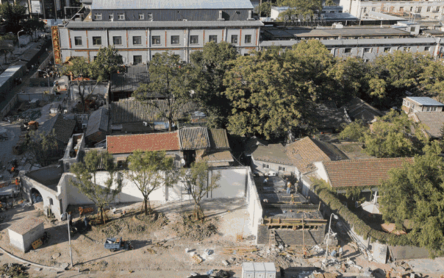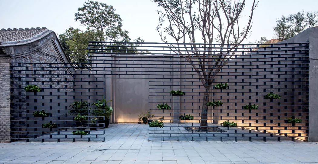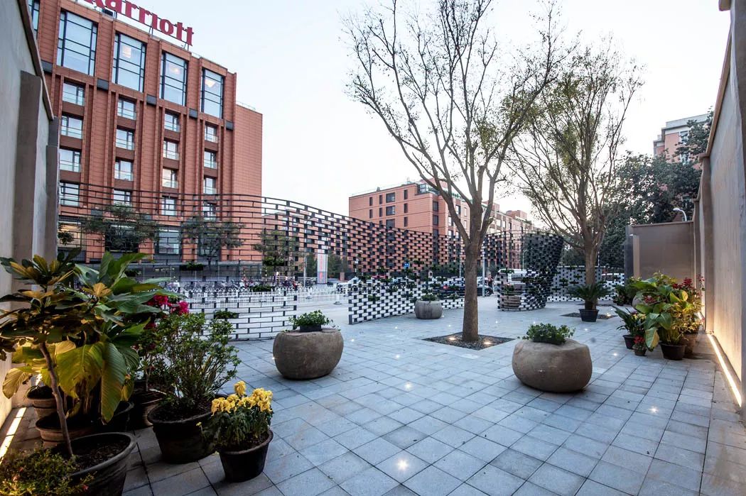 结合“墙上痕”的创作,设计师又依托场地内已经存在的高大树木,种植了一些胸径较大的国槐,营造了“树下荫”的效果,连同“墙上痕”中的立体绿化和场地内的盆栽植物花卉,共同构成了一幅副老北京四合院的生活场景片段,以此唤起和重构公众对于旧城生活的集体记忆。
