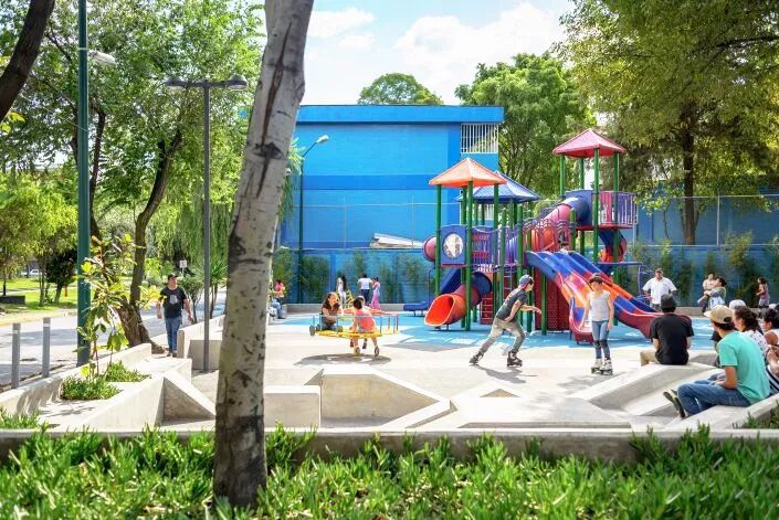 下面这些照片来自墨西哥一位专业摄影师镜头下的墨西哥城市的口袋公园。它们本来是桥下的闲置空间,街边或者道路旁的消极空间,但经过设计师们的充分设计利用,变成一个个融入市民生活的口袋公园,为城市发展注入活力。