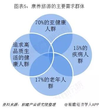 目前我国,70%的人处于亚健康状态,15%的人处于疾病状态,在加上17%六十岁以上的老年人口。未来10年,各种慢性疾病将以爆发式的速度迅速扩展到每一个家庭。另外康养旅游的需求主体:还包括1.09亿的中产阶级中的追求高品质生活健康人群。世界卫生组织数据显示,中国人均健康支出不足美国的5%,距离全球人均健康支出差距更大,仅为1/5,因此,中国大健康产业发展潜力巨大。