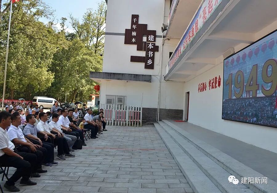 在潭城街道考亭村,魏敦盛与党员干部收听收看了庆祝中华人民共和国成立70周年庆典活动。