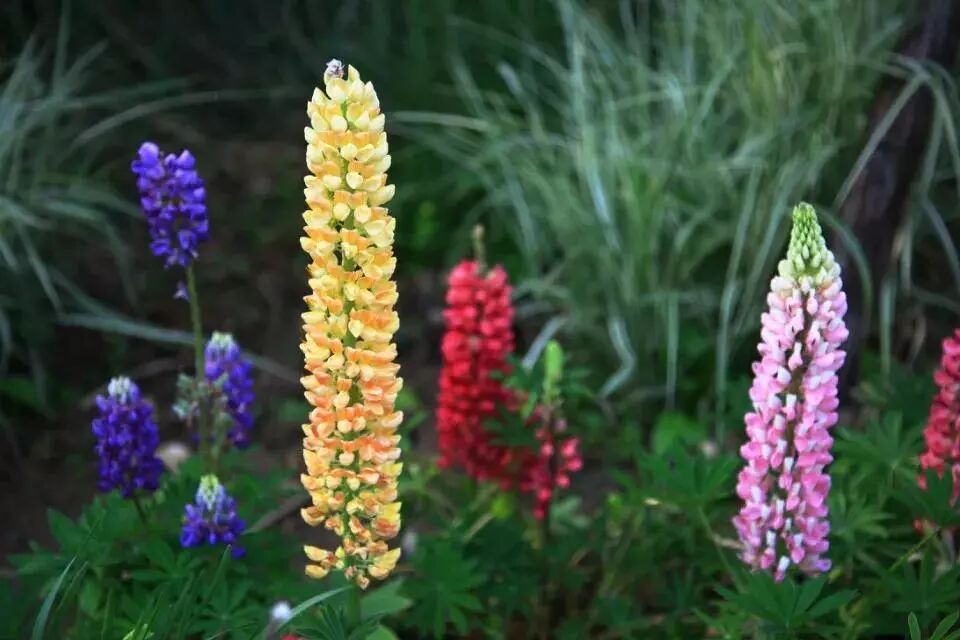 多采用稍高的多年生宿根花卉,如穗状花序的羽扇豆、金鱼草等,还可以使用一些稍高的观赏草类等。