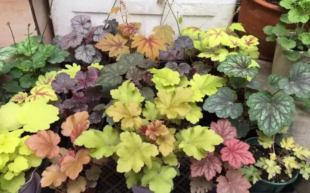 又名珊瑚铃,虎耳草科矾根属,多年生耐寒草本花卉,浅根性。叶基生,阔心型,长20-25cm,深紫色,在温暖地区常绿,花小,钟状,花径0.6-1.2cm,红色,两侧对称。喜半荫,耐全光;园林中多用于林下花境,地被,庭院绿化等等。花期4-10月。是理想的宿根花境材料。也是近些年从国外引入的多年生宿根花卉。矾根最出众的地方还是它叶子的色彩,有的品种叶片背面的色彩也相当艳丽。另外,不同的季节、环境和温度下叶片的颜色还会有丰富的变化。