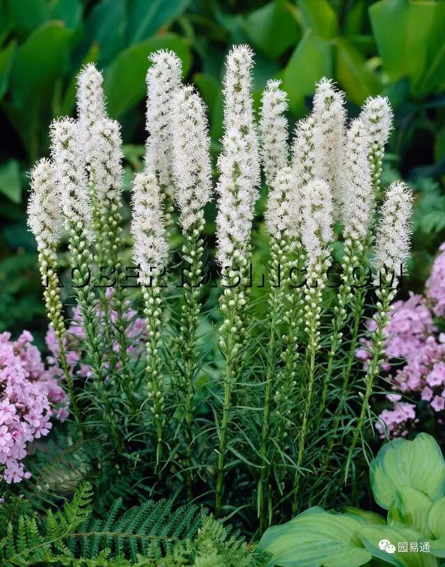 蛇鞭菊同样有着丰富的色彩可供选择。如果只做一片观赏草花境,那就可以多使用2-3种色彩作调和。如果是布置多处花境,可以每一处使用一种颜色,从而使得移步异景,色彩不同。也可以利用色彩调和,使得看起来每一处都是混色,但主色调各具不同。
