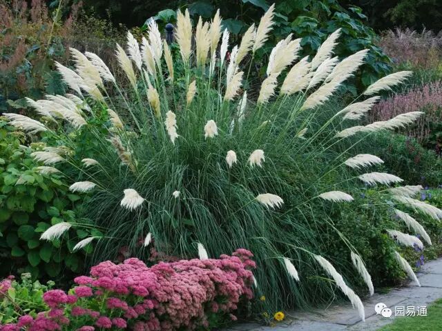 全部使用观赏草设计种植也可以在效果上获得成功,但是,如果将一些具有独特魅力的开花、观叶植物与观赏草结合起来,将使观赏草花境显得熠熠生辉。