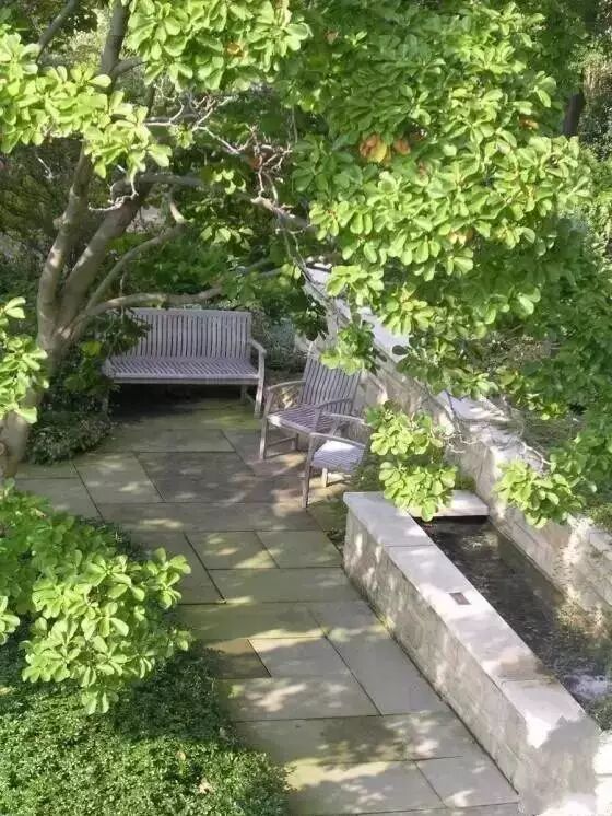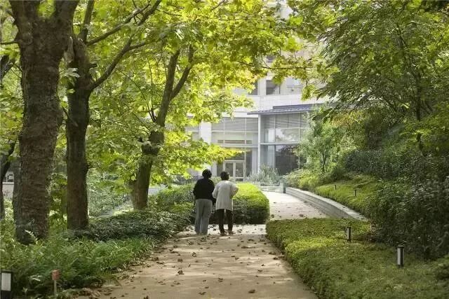 在康复花园里,要看到蔚蓝的天空,看云卷云舒,在池边观水,水中有月色云霞倒映。树林池水吸引野生动物栖息,暗示患者生活还在继续:随步移景异观流水潺潺,通过巧妙的设计,将园外景色借入,扩大景观感受空间。