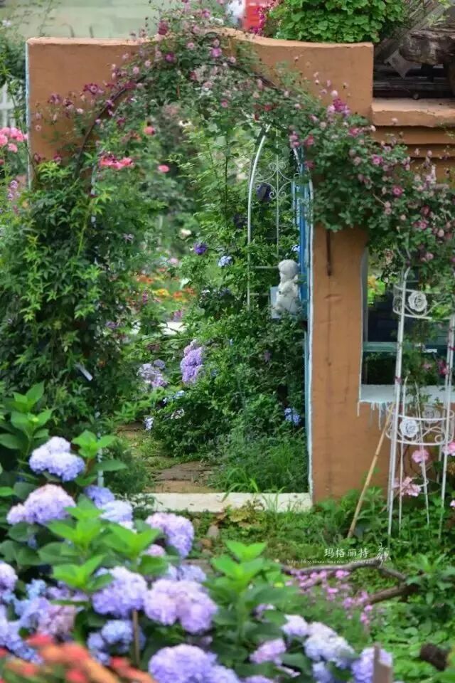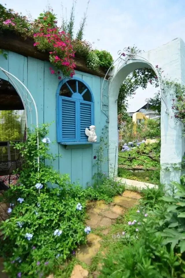 太多元素堆砌在花园的各个位置,矮墙、小窗、拱门、屋顶,色彩也是大胆而丰富。而每一处,却都是完整小花园的样子,且都顺理成章地连接。