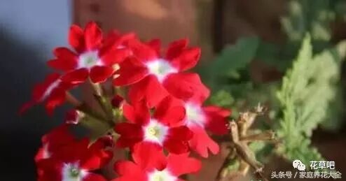 美女樱,也叫草五色梅、美人樱。美女樱株丛矮密,花繁色艳,开花部分呈伞房状,花色有白、红、蓝、雪青、粉红等多种颜色,适宜栽种在花盆中,放在阳台上观赏价值很高。