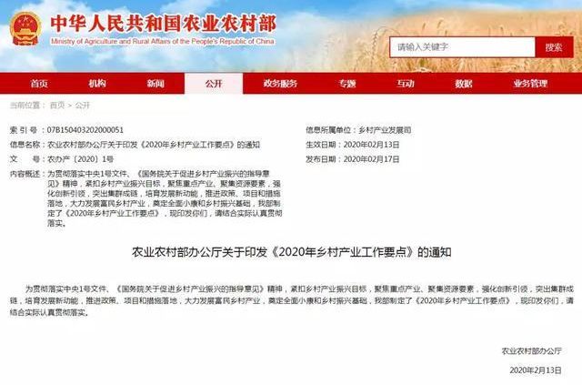 近日,农业农村部发布了《 2020年乡村产业工作要点》,给大家带来了2020年发展乡村产业的新方向。