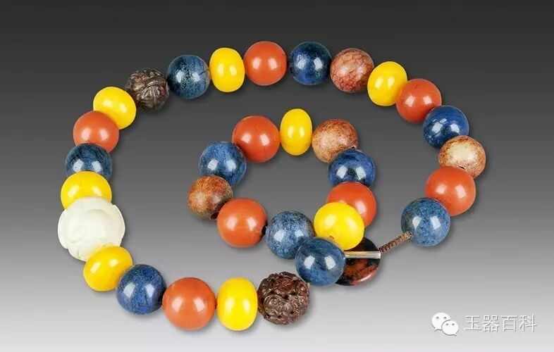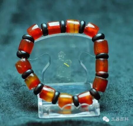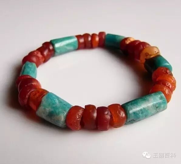 在夏家店下层文化的考古发掘中,发现许多这样的玛瑙珠子,同时出土的还有一些天河石、绿松石和各种地方玉珠子,可想当时人们就是这样把五颜六色的珠子串在一起佩戴的。
