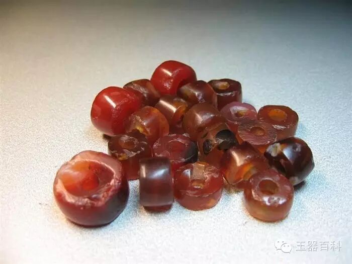 其实现在大家称之为“西玛”的珠子已经是一个比较大的范围了,所有这种扁圆的、两头平齐的红玛瑙都称统为“西玛”,它的年份上至新石器时代晚期,下至战国,一直都在使用佩戴。
