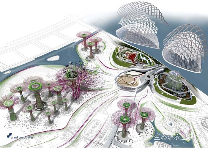 Gardens by the Bay项目是新加坡最大的海滨发展景观项目,由国家支持。新加坡国家公园局和来自英国的世界级景观事务所Grant Associates通力合作完成。花园有两个大温室,一个是荫凉干爽的环境,一个是潮湿荫凉的环境,还有众多主题园,植物园,里面种植着来自世界各地的成千上万植物。这个公园中最让人印象深刻的要素是一些高25米—50米的树状结构,上面成长着垂直花园。