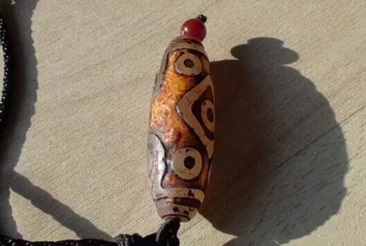 天珠为九眼石页岩,矿物元素为二氧化矽及其他微量元素,细可分为玛瑙质与玉髓质成份,为藏密七宝之一。