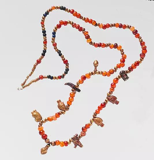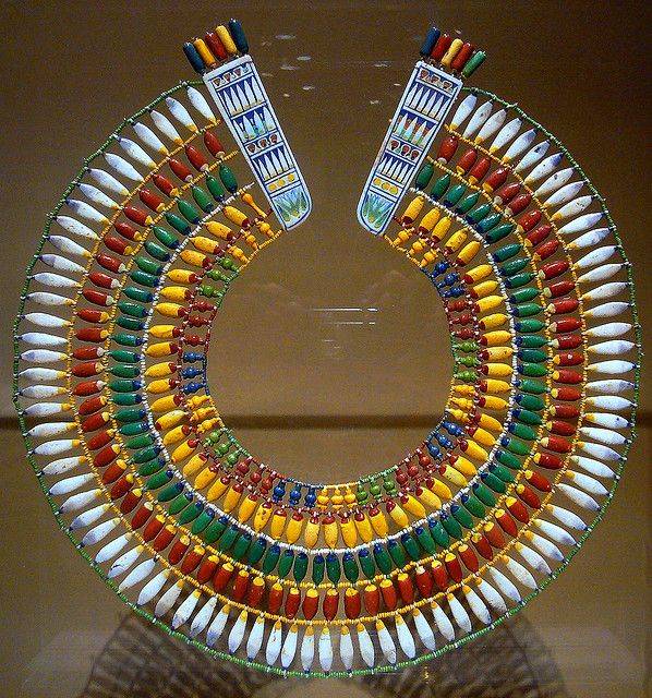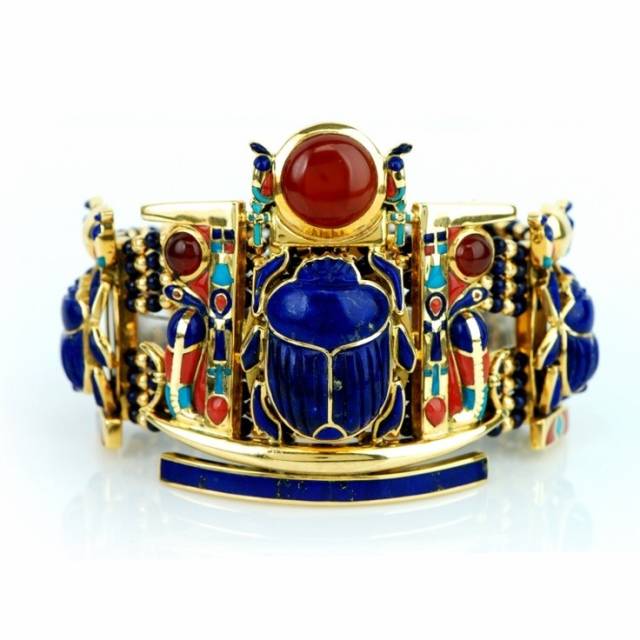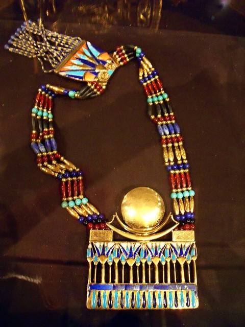 【艺术】奢华的古埃及首饰图赏 时间 2015年4月9日 作者 偷眼网 — 无评论 ↓ 古埃及首饰色彩艳丽,制作精美,代表了当时杰出的、令人惊叹的首饰加工水平及设计师非凡的创造力。金色是埃及首饰最主要的颜色,如同耸立在埃及广漠大地上的金字塔一样,让人感到皇族的奢华高贵和神圣不可侵犯的无上权威。 古埃及法老、贵族的首饰多用贵重金属和半宝石制成,那是当时人们喜爱的材料。埃及国内盛产黄金,白银则十分稀有,而金银合金较为耐用,故贵重金属主要指金银的合金。 来源:摘自互联网