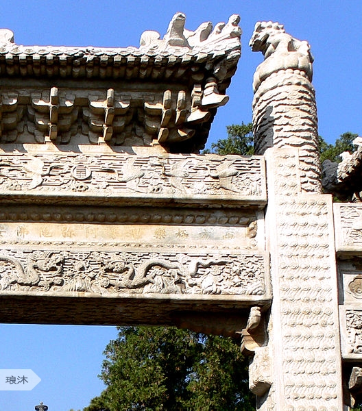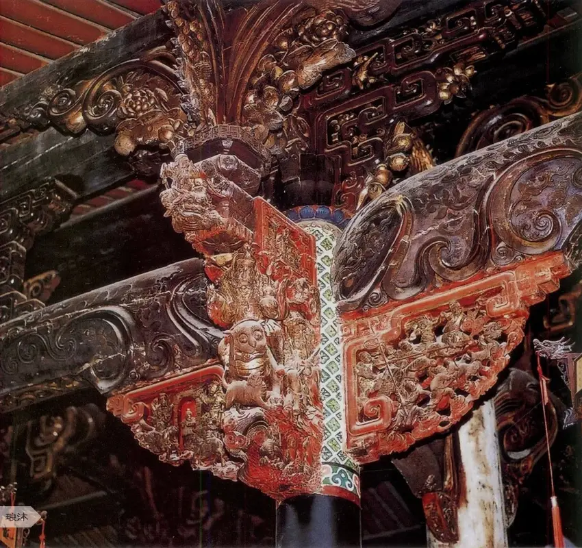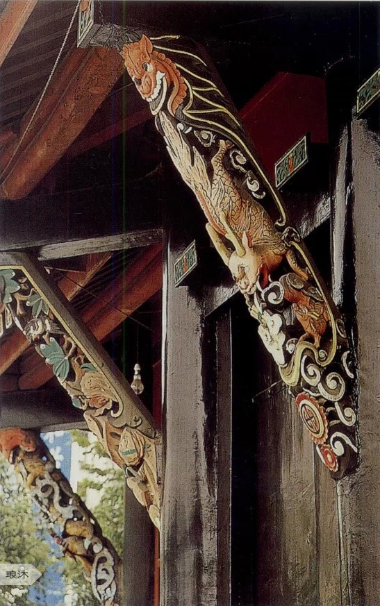 此类雀替专用于牌楼上,为使美观,故造型格外华丽。相较于其他雀替,龙门雀替多云墩、梓框、三福云等结构性造型样式。