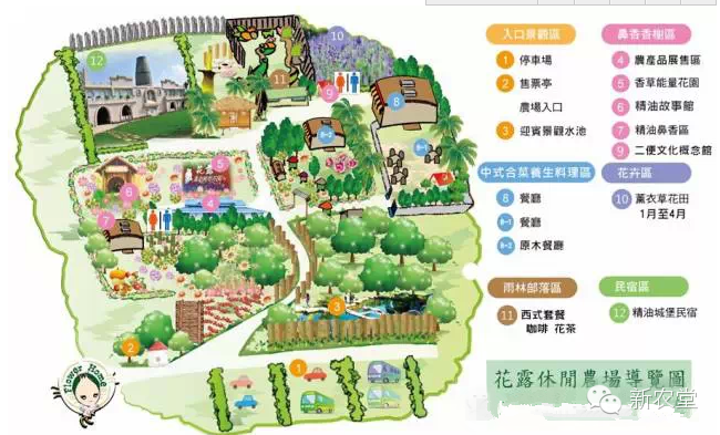农场是由独具慧眼的退伍军人陈基能购买50亩地建起来的, 从小就喜欢拈花惹草的农场主人陈基能虽然不是学农出身,但却在强烈的兴趣的下将自己热爱的花卉世界经营的有声有色。因为深信农业方式长久持续的根本,陈老板从来不采取任何可以迅速招揽客人的花招,只求扎实的做好每一个基本动作。不管住宿还是游玩全以原生态的物品与风格设计,其客户多为新加坡等东南亚的富人。农场兼营各种精油提炼,他搜集了百年前的精油样品和设备,正在筹建一座精油博物馆,其中数字视频项目需要大约一百万人民币。